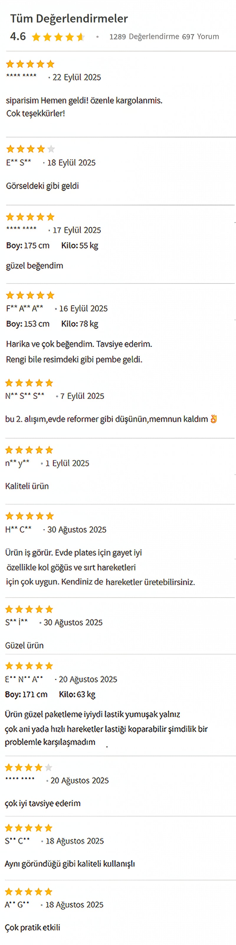 4.6 değerlendirme 1289 memnun müşteri